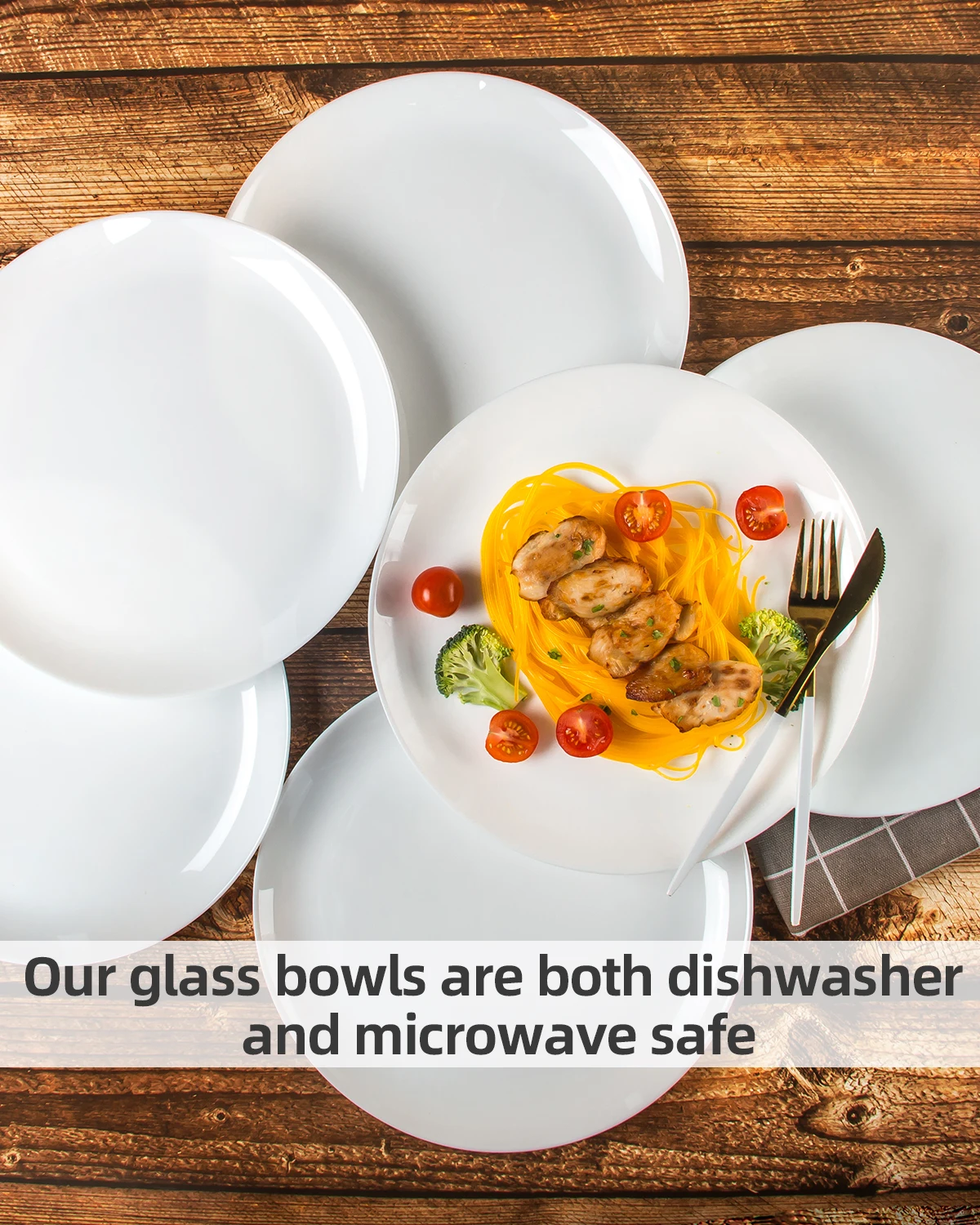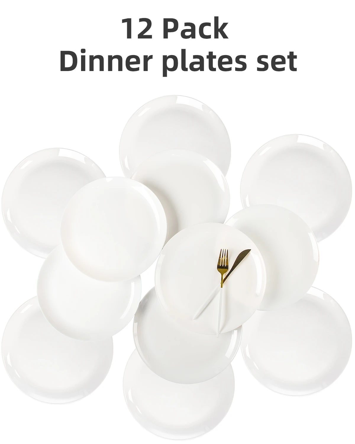 10.5 Inch 12-Piece Opal Glass Dinner Plates, Microwave/Dishwasher Safe | Stylish & Shatterproof for Home/Restaurant
