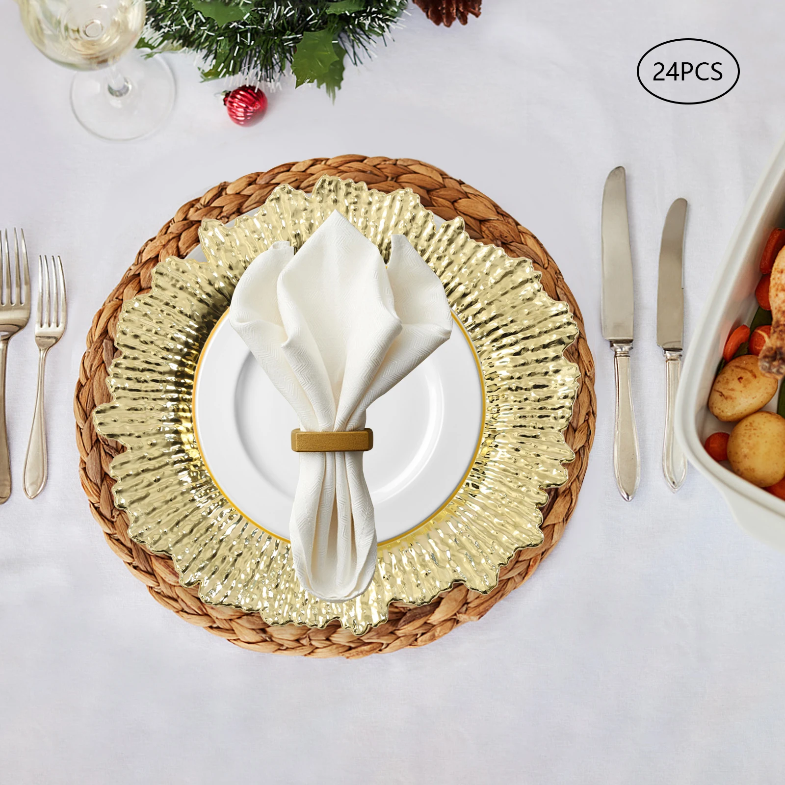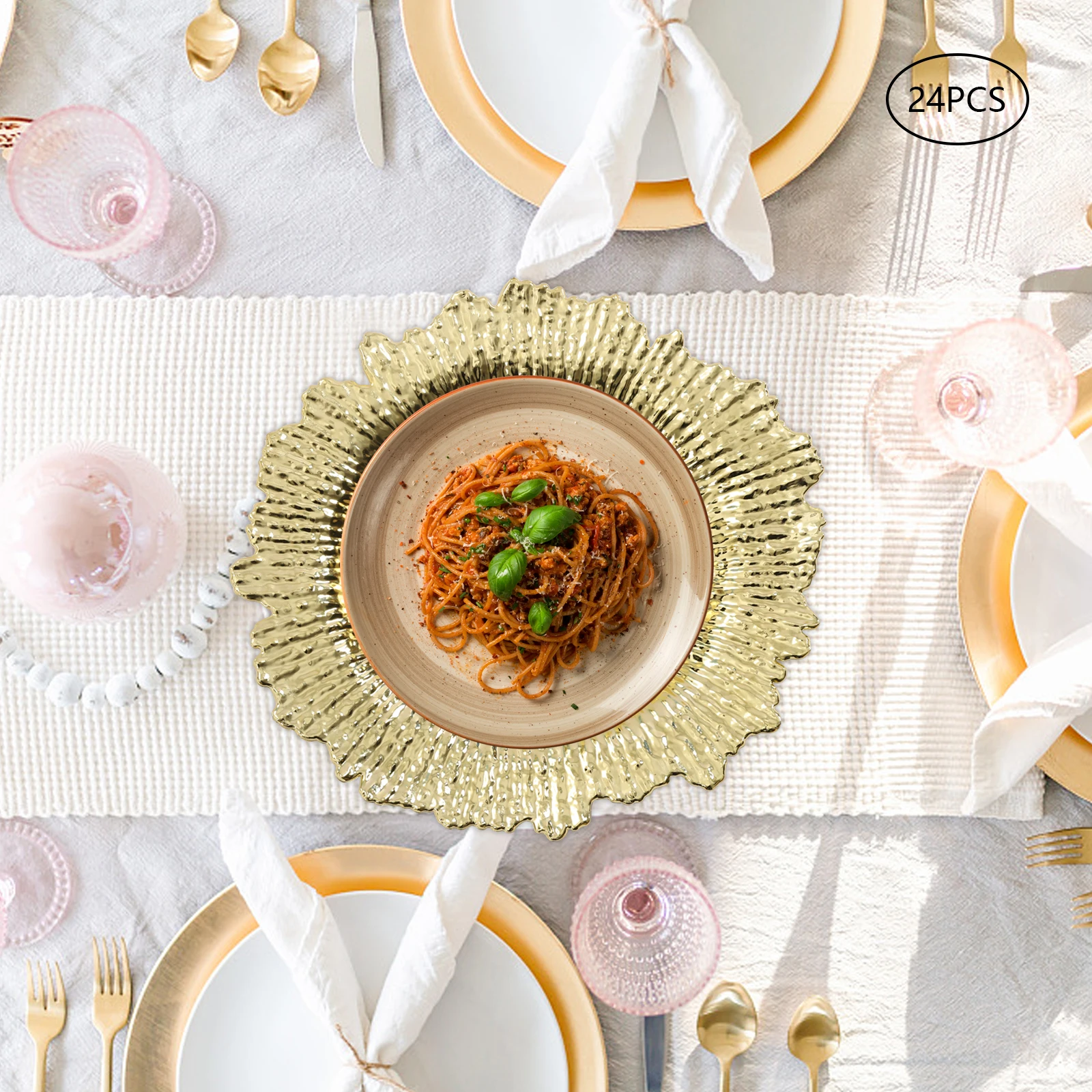 24pcs 13″ Chargers Plate Round Gold Salad Reef Plate for Wedding Dinner Plate Decor, Party Celebrations