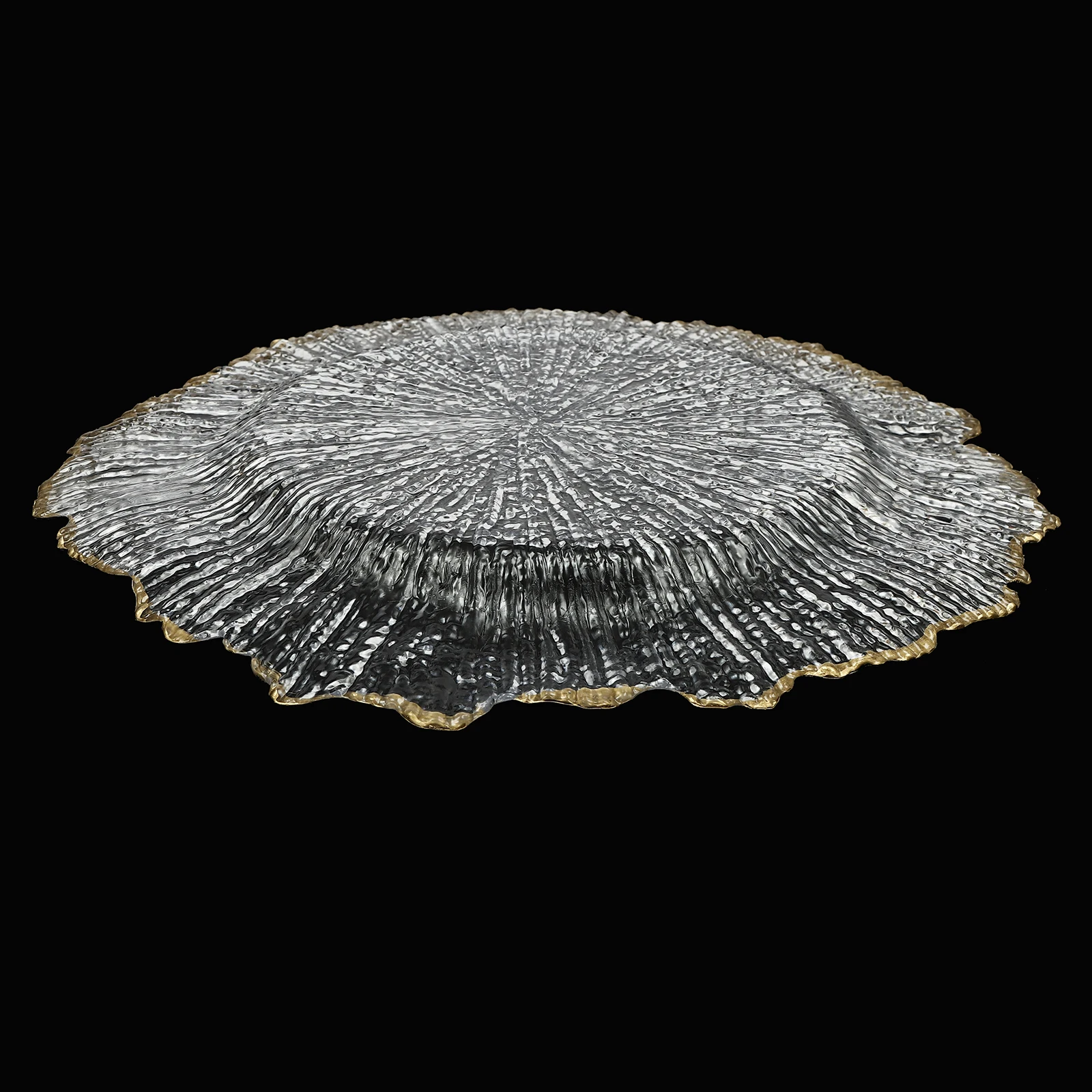25 Pcs Clear Gold Flower Charger Plates Table Dinner Plates Hot Stamping Sturdy Easy Clean For Family Party Business