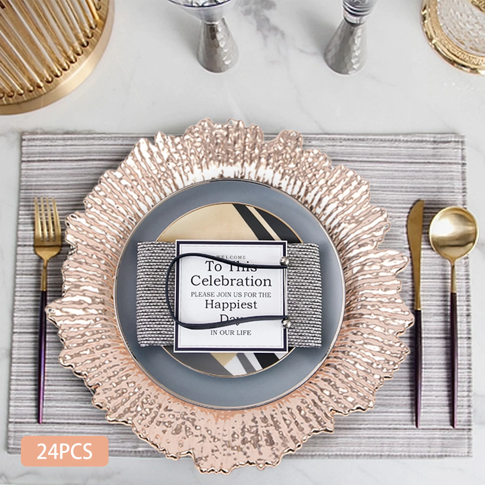 Rose Gold Plastic Charger Plates 24 Pieces Marine Style Modern Electroplating Dining Decoration